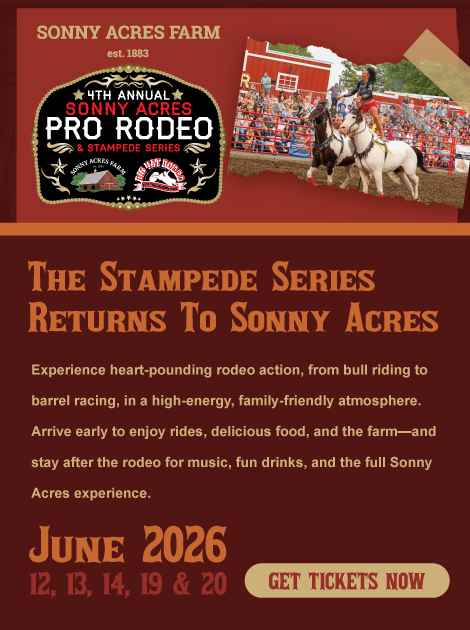 Experience heart-pounding rodeo action, from bull riding to barrel racing, in a high-energy, family-friendly atmosphere. Arrive early to enjoy rides, delicious food, and the farm—and stay after the rodeo for music, fun drinks, and the full Sonny Acres experience.