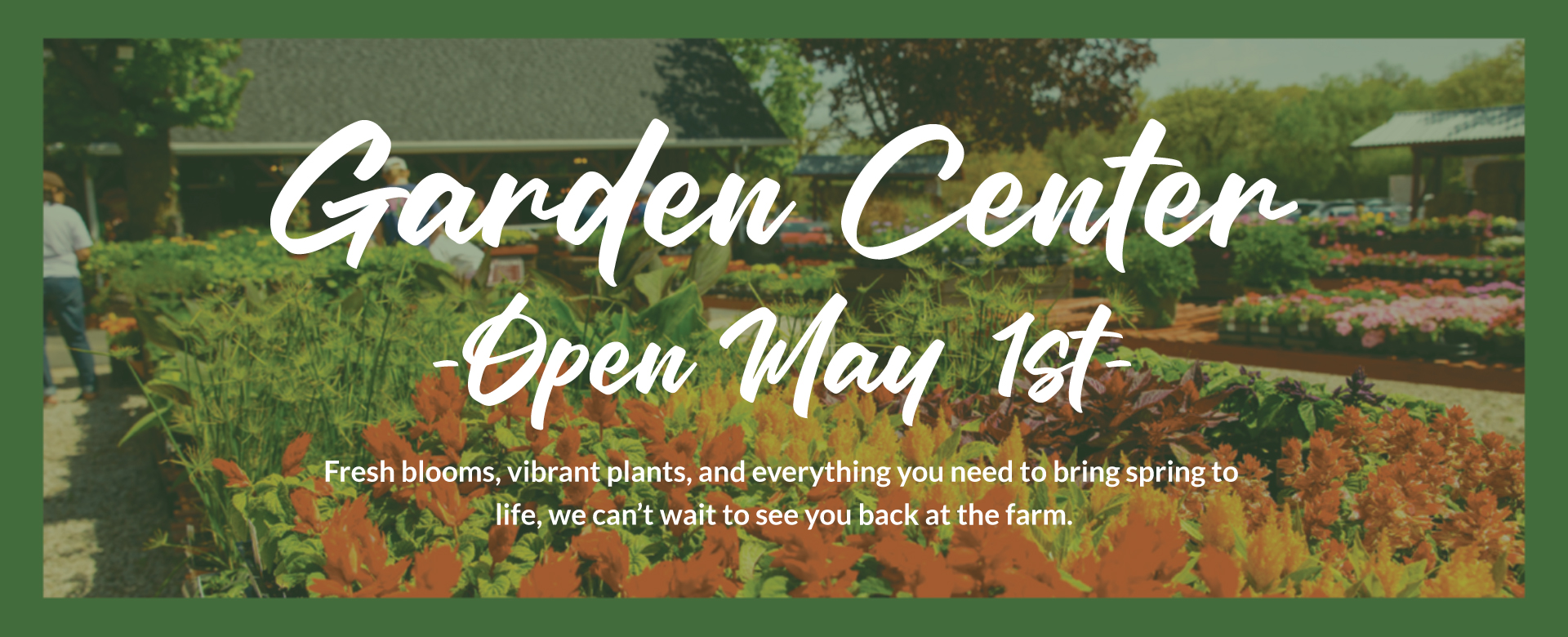 May 1 — Garden Center Opens Fresh blooms, vibrant plants, and everything you need to bring spring to life, we can’t wait to see you back at the farm.